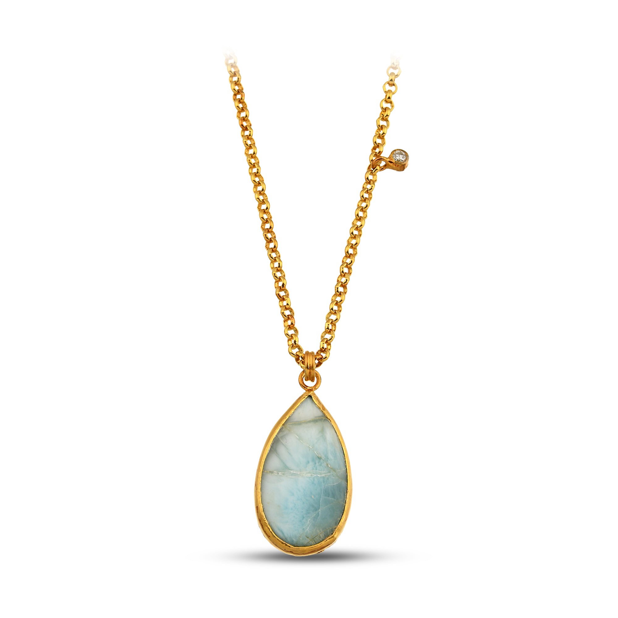This pendant carries the quiet poetry of wide-open Western skies after a summer storm. The amazonite’s soft blue-green tones mirror the moment when the clouds finally part and the sun washes the land in pale light. Its teardrop shape feels like a single raindrop left behind—a reminder that even in wild country, calm always returns.