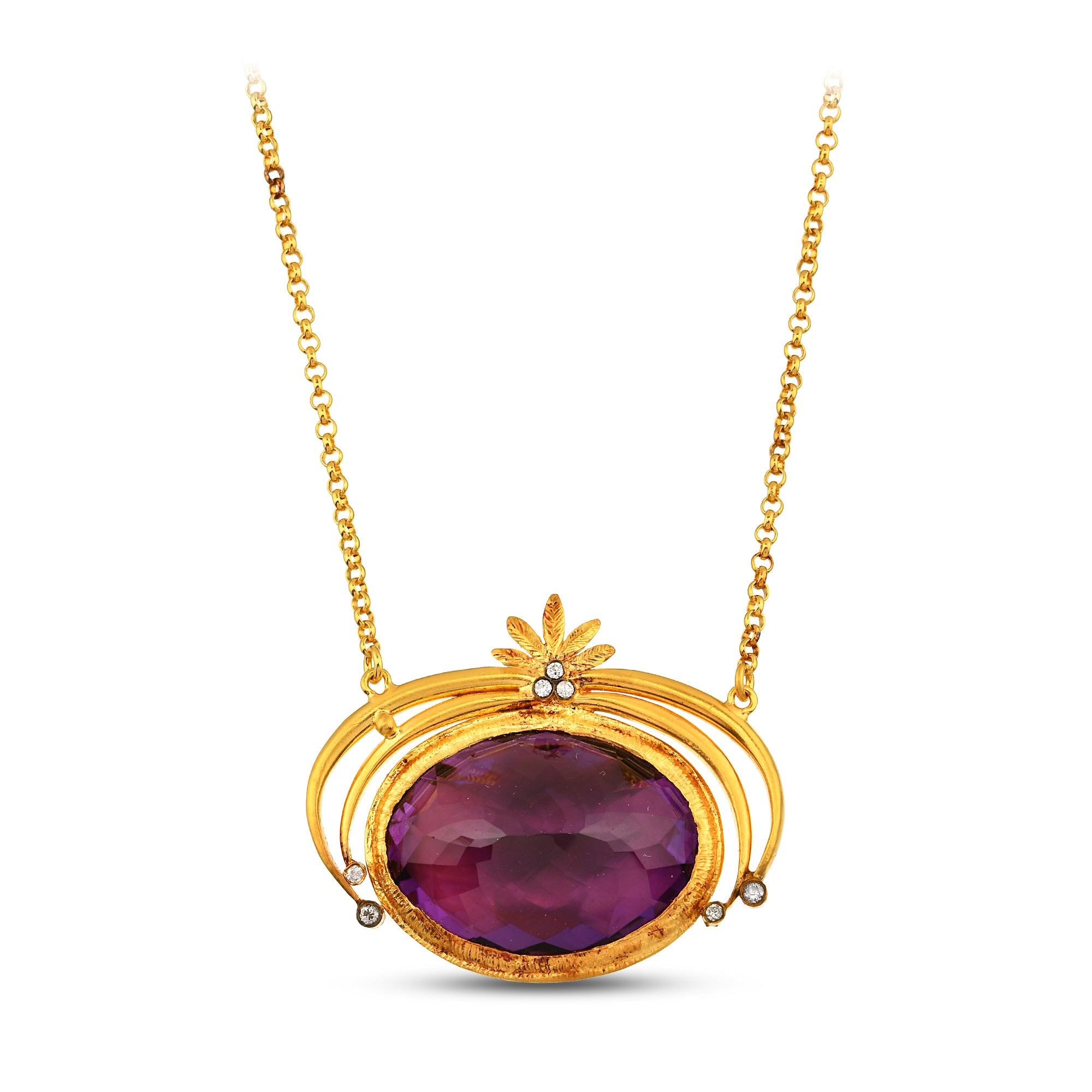 With its deep purple stone glowing like the last light over wide-open plains, this pendant blends Western romance with bold elegance. The golden arcs frame the gem like a setting sun, while the tiny star-like accents add a touch of frontier sparkle. Prairie Dusk Pendant is made for those who love pieces that feel dramatic, warm, and lit with the spirit of an endless horizon.