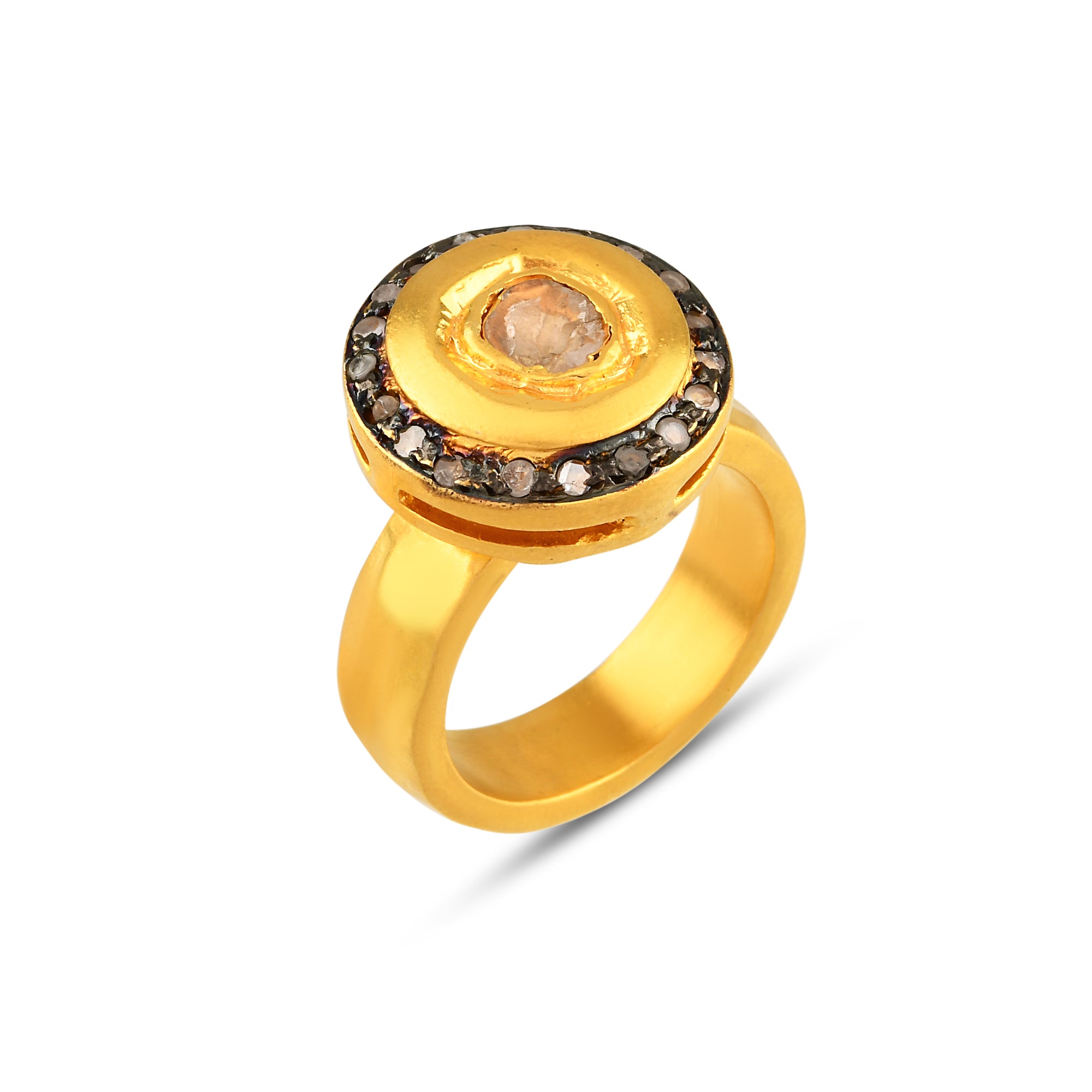Helios is inspired by the radiant sun of antiquity — a symbol of power, renewal, and divine clarity. The central raw diamond mirrors the burning core of the sun, encircled by a halo of darker stones that echo the shifting balance between light and shadow. Crafted in rich gold, this ring captures the eternal motion of dawn — a tribute to those who shine even through the storm.